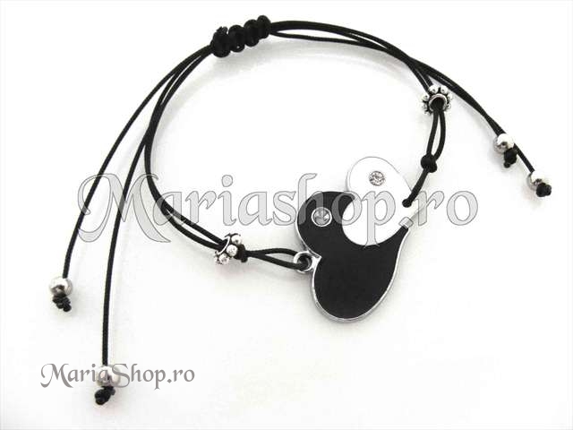 Bratara pe snur, reglabila, cu link metalic emailat, 2 inimioare